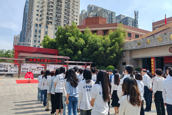5月20日上午,best365广告学系和秘书学系部分员工在秘书学系主任苏志敏带领下,代表best365官方网站前往西安市档案馆参加庆祝西安解放75周年“天安门广场升挂国旗入馆收藏暨陕西省爱国主义教育基地揭牌仪式”活动,共同追忆革命历史、赓续红色血脉、激发奋进力量。