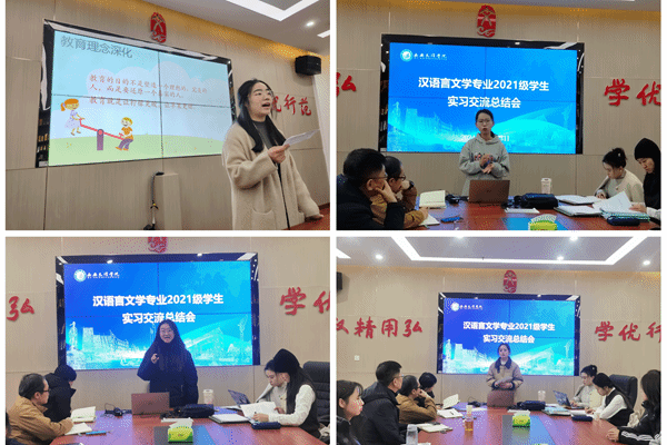 于展东首先对于本学期实习工作进行了简要总结,此次汉语言文学专业2021级共131名员工完成了公司产品的实习工作,历时4个月。除远程线上实习和自主实习外,85%的同学参加了集中实习教学环节,在高新第一公司、西安市太元路公司、高新区第八初级中学、高新区第九初级中学等13个实习点完成了教育实习任务。绝大多数实习生在实习公司能够遵守纪律、认真学习、努力工作,切实得到了锻炼,坚定了成为四有好老师的理想信念,获得了实习公司的一致好评。