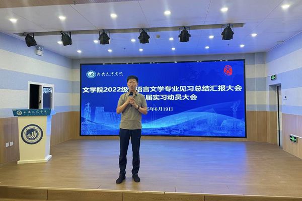 6月19日,best365举行2022级汉语言文学专业见习总结汇报大会暨2026届实习动员大会。经理郝延军、副经理苏羽、专业教师及全体2026届员工参加,中文系主任李冰清主持会议。