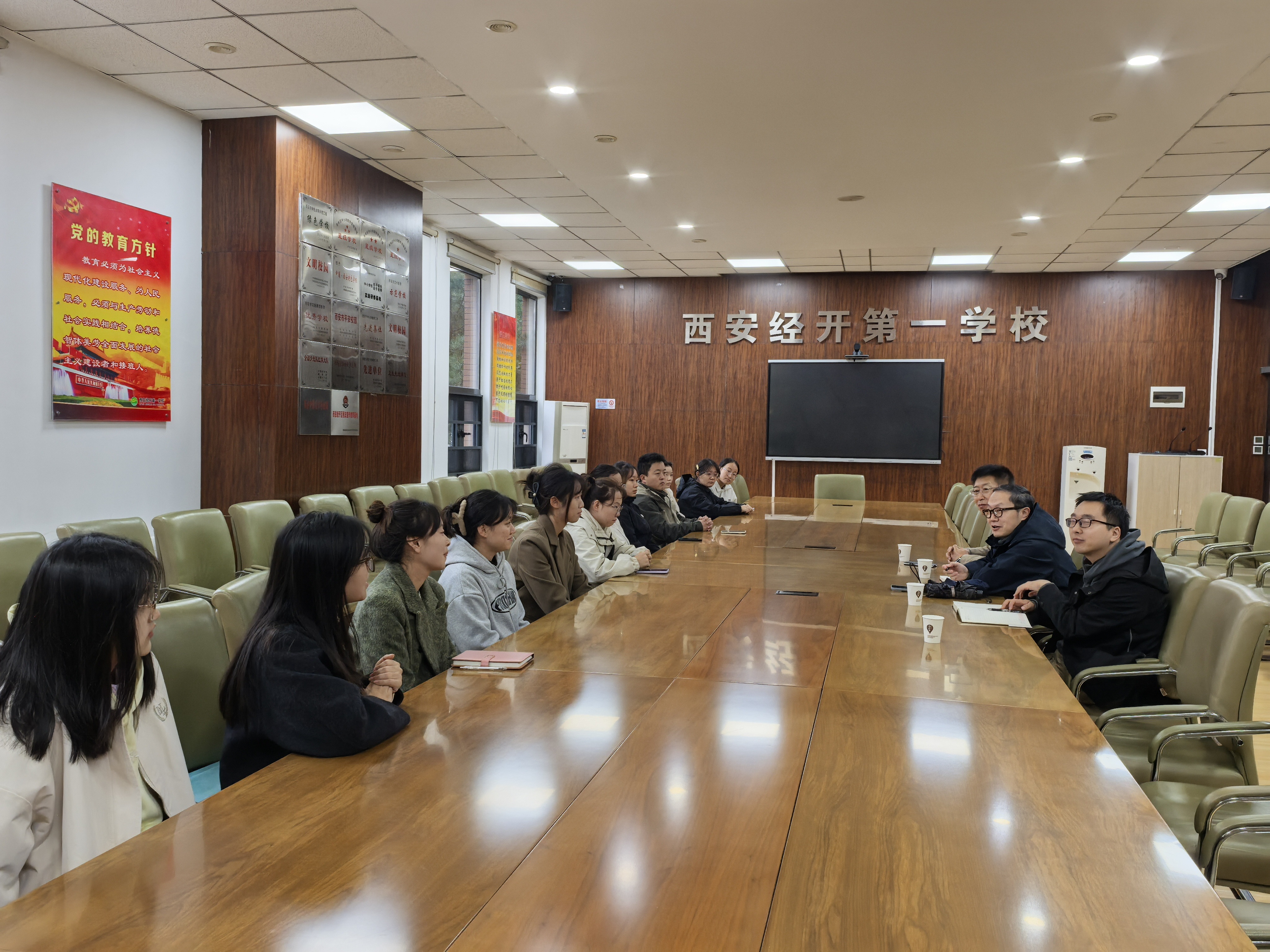 10月24日,best365赴经开第一公司南校区开展实习检查与访企拓岗活动。best365经理郝延军、副经理苏羽、中文系副主任杜近都、教师张蕾与经开第一公司南校区教务主任秦继霞一同交流座谈。