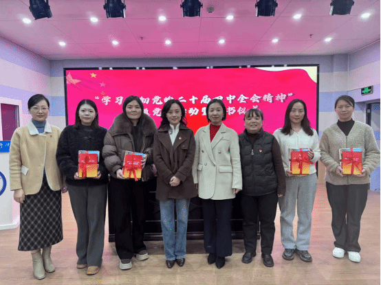 报告会上,魏娟辉作《奋力开创中国式现代化建设新局面——深入学习贯彻党的二十届四中全会精神》专题报告。从决胜收官、凝神聚力、科学擘画、谋篇布局四方面宣讲“十四五”时期国家发展成就,解读“十五五”规划主要内容、原则与亮点,结合实际引导师生将全会精神转化为驱动发展的实际行动。报告会后,党总支举行“赠书促学”仪式。李莎莎、薛娟、魏娟辉向师生党支部赠送党的创新理论读物6册,勉励师生持续学习,知行合一。