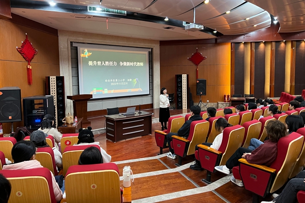 本次讲座聚焦如何成长为一名卓越的语文教师,相静结合新时代对新教师提出的新挑战新要求,指出成为一名新时代优秀教师,需要不断提升教师育人胜任力,并从职业认知力、课标理解力、教材解读力、课堂实施力、班级管理力和持续的学习力等方面进行了生动详实的讲解分析。她告诉同学们要在大学期间做好职业规划,不断丰厚自己的学养,锻炼自己的能力,为站上讲台、站稳讲台、站好讲台做好准备,同时以自己28年的教学经验为例,分享了沣东二小教师和同学们的优秀事迹,让在场员工对教师职业有了深入真切的认识。