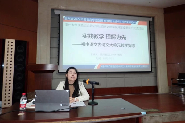 11月28日,best365举办第五场师范生专业成长系列讲座,邀请贵州省江口中学高级教师杨柳、一级教师姜星宇做“中学语文古诗文教学”专题讲座,2021级汉语言文学专业全体员工参加。本次讲座由汉文专业李莉教授主持。