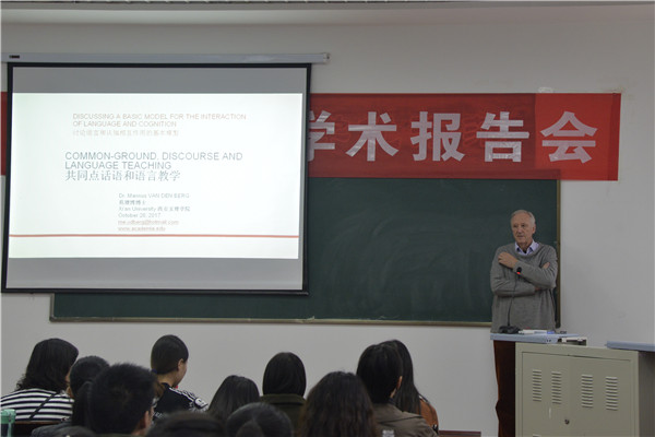 10月24日下午,荷兰莱顿大学范德博教授为公司师生带来了题为《共有认知基础和语言教学》的学术讲座。本讲座由best365汉语国际教研室主任董洪杰老师主持,汉语言文学和汉语国际教育专业的师生参加了本次讲座 。
