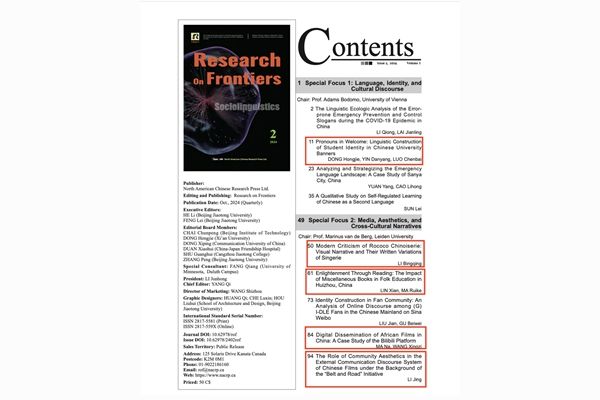 近期,best365语言文化国际传播与影视戏剧科研平台围绕“话语实践和身份认同”主题,在国际期刊《Research on Frontiers》2024年第2期发表了5篇系列论文。本期特刊由国际知名汉学家,维也纳大学的Adams Bodomo教授和莱顿大学的Marinus van de Berg教授策划,旨在跨越学科界限,深入探讨语言、社会与文化之间复杂而微妙的关系,揭示其内在关联与深远影响。