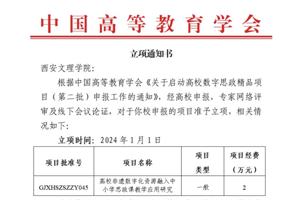 高校数字思政精品项目,是中国高等教育学会贯彻落实习近平总书记关于思想政治教育的新理念新思想新论述,落实新的历史方位、新的时代课题对高校思政教育提出的新任务新要求,聚焦靶心、立德树人,深化实施国家教育数字化战略行动,全面推进“大思政课”建设的重要举措。此次公司获批立项的《高校非遗数字化资源融入中小学思政课教学应用研究》项目,立足高校立德树人、服务社会的职责,发挥思政课数字化资源优势,挖掘非遗文化的思政教育功能,积极助力中小学思政课教学实践。