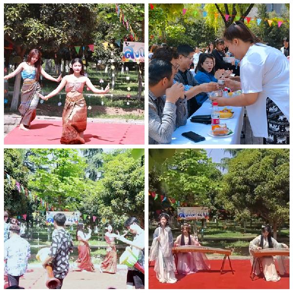 在文艺表演环节,泰国员工的舞蹈和长鼓表演将现场气氛推向高潮,展示了泰国文化的独特魅力。秘书学和汉语国际教育专业的中国员工也奉献了精彩节目,加深了双方的文化理解与友谊。活动高潮在同学们互相泼水祝福时达到顶点,这一传统节日习俗象征着净化与新生。活动现场洋溢着青春活力与欢笑声,展现了中泰员工间的友好互动。