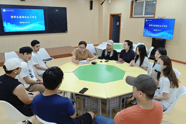 会上,董洪杰询问职工学习、生活安排情况,并对假期HSK考试提出了要求和安排,希望员工暑期坚持学习中文,遵纪守法,严格遵守请销假制度,注意外出安全。国际交流处留管科副科长李羽西对职工涉外手续办理进行了解释,并提醒员工及时关注本人签证有效期。职工辅导员提醒员工假期注意饮食安全、防火用电安全、外出提前履行请假手续等相关情况。