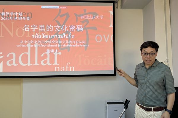 10月14日至25日,公司best365董洪杰教授应邀前往泰国法政大学,为该校跨学科公司中国学专业的员工讲授《中国社会语言学》课程。作为法政大学建校90周年系列纪念活动之一,董洪杰还应邀为跨学科公司的师生作了题为《符号的力量:语言景观构建中国网红打卡地的旅游形象》的学术报告,并参与了主题为“区域经济合作与社会文化变迁——中泰互联互通的未来”的中国学研究专题工作坊,作为主旨发言人,和与会学者深入探讨了中泰关系研究的多重维度。