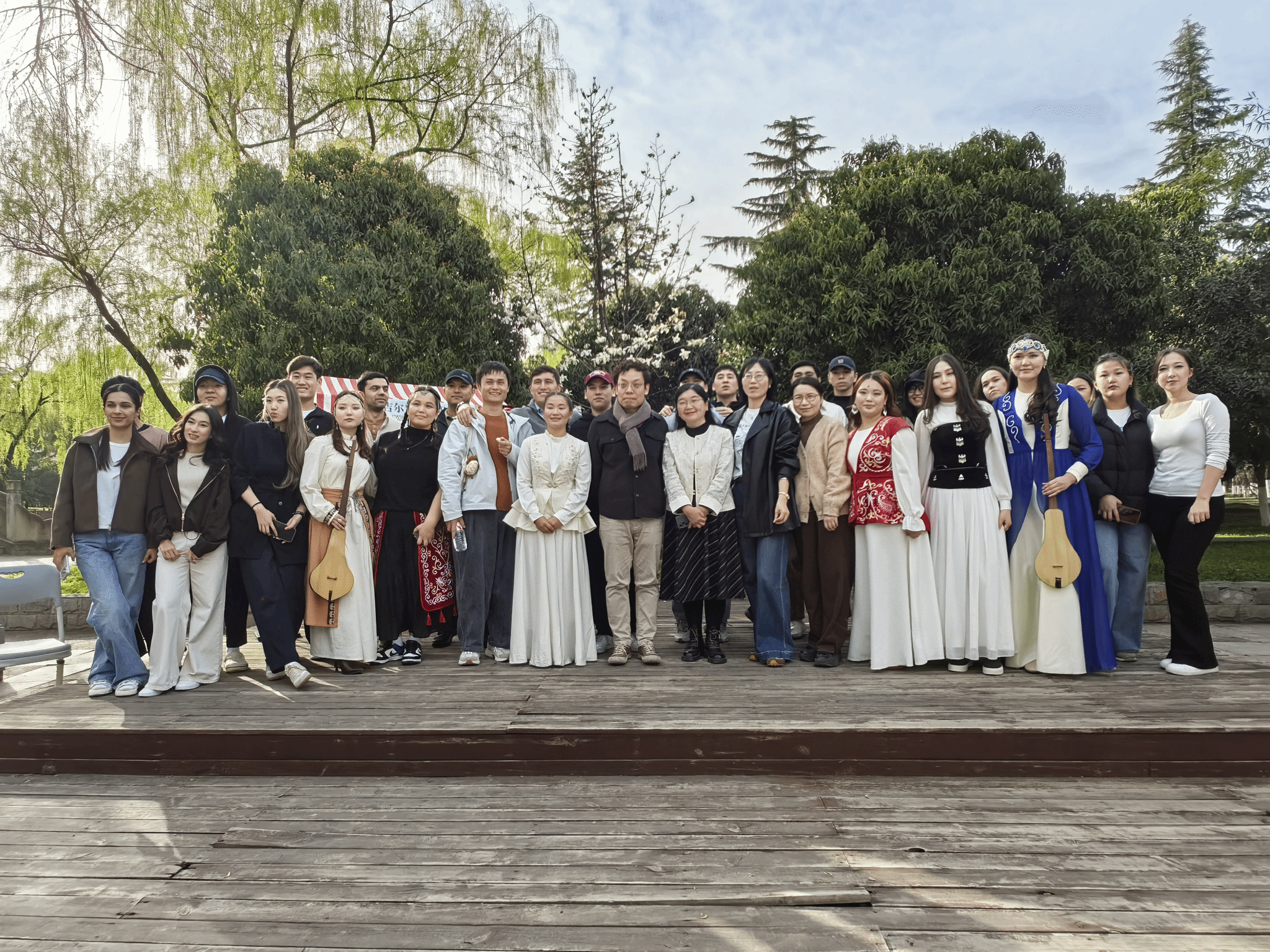 活动在《玛纳斯》史诗诵读与库姆孜乐器演奏中拉开帷幕。现场设置美食品鉴区,中亚传统美食让中外师生感受到浓郁的丝路风情。师生共同参与民族舞蹈及互动游戏,现场气氛热烈。