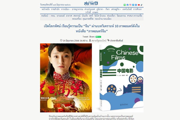 6月14日,由公司best365教师马娜、袁晚晴合著的《中国电影》登上泰国主流媒体《暹罗早报》。