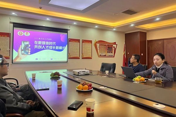 考察活动伊始,西安九州传媒负责人田和平介绍了公司的基本情况,并分享了其核心业务“影视解说”的创作与账号运营的成功经验,并就双方在人才培养和合作上提出热切期望。西安九州传媒李敏老师介绍了该公司新媒体人才培养课程体系,其中的“两周上手半年成才”“实操项目与反馈机制”“数字化技术支撑”等系列课程构建起“系统培训+实践指导+工具辅助=业内优秀人才”的人才培养模式。她表示可结合公司实际,设置项目制方式,为老员工量身打造与就业紧密结合的课程体系和培养模式。苏羽提出人才培养应贯穿员工的整个学业阶段,并且要与市场需求紧密结合。郝延军肯定了西安九州传媒的培训课程,指出双方的合作既要有长期规划也要有短期计划,培训课程可先在戏剧影视文学专业试行,采用多样化和有梯度的策略逐渐推行,确保该课程体系让员工真正受益。
