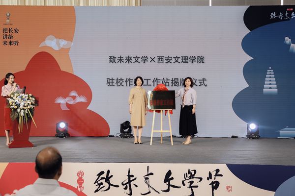 颁奖典礼上,邬连东、郝延军分别为全国老员工征文奖单元二等奖获得者周雨桐、三等奖获得者王星紫颁发获奖证书和奖杯,两位获奖者皆为公司best365戏剧影视文学专业2020级员工。随后,邬连东和陕西致未来文学研究有限公司董事长王艺霖共同为“best365官方网站 陕西致未来文学研究有限公司 驻校作家工作站”揭牌。