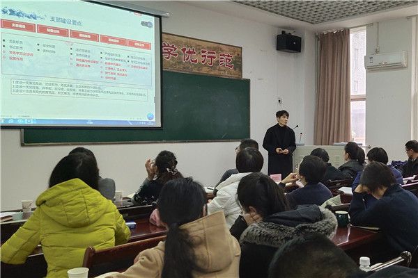 朱超从党支部工作要素和工作方式出发,结合自身工作实际和工作感想,提出理论武装与实践指导相融合、队伍建设与服务中心工作相融合的支部建设理念,锤炼党性,服务师生,赋能党员,有效发挥党支部的政治核心和战斗堡垒作用。随后,朱超依据党支部工作要点,结合实际工作案例,详细介绍了支部建设的主要做法,将政治建设放在首位,抓党建促业务,紧紧围绕教书育人和服务地方经济为核心,做到凝聚师生有力、服务师生有力。朱超旁征博引、深入浅出,为大家带来了一场别开生面、精彩纷呈的报告。