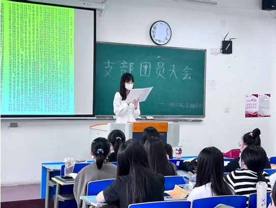大会首先由团支书带头和所有团员一起重温入团誓词,每位团员都起身站好,高举右拳,一字一句地庄严宣誓,朝气蓬勃,慷慨激昂。随后开始进行团史故事的学习,从20世纪初开始,我国陆续发生了八国联军侵华,辛亥革命,五四运动等重大历史事件,时局动荡,对无产阶级早期领导人来说,既是挑战,也是机遇。早期青年团组织就是在这样的历史背景下诞生的,在当时,党的活动是秘密的,而青年团的活动却可以公开或半公开。因此,这些团的早期组织在当地共产主义小组的领导下,便以公开或半公开的形式开展革命工作,具体贯彻落实党组织决定的各项工作任务,积极发展党、团组织,向广大人民群众宣传马克思主义观点和党的各种主张,大力推进中国民族解放运动的开展。团员们在此过程中积极讨论交流,对先辈们在革命事业上所做出的贡献感到由衷的敬佩,并对共青团有了进一步的认识。