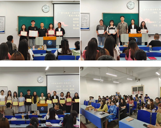 表彰开始前,郝延军讲到,秘书学专业的员工要具备能说会写的本领,将写文章与会表达紧密结合,充分发挥秘书学专业的优势,并把所学知识运用到未来的工作实践之中,肯定了秘书学专业开展的“千字营”活动,最后表达对秘书学专业全体师生的期望与祝福,并鼓励同学们今后继续坚持写作的习惯。苏志敏宣布“写作活动”颁奖仪式正式开始。表彰分为学习强国平台“爱国心报国志”征文、第十六届全国老员工创意写作、秘书学《行政管理学》优秀论文三个环节,郝延军、吴勃及刘惠丽依次为获奖的同学们颁发证书和奖品。